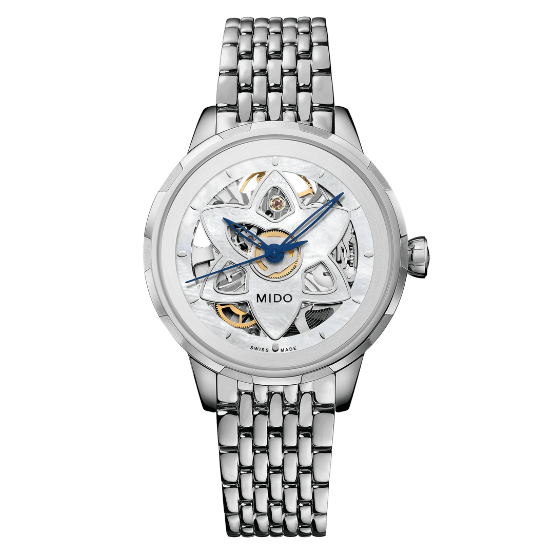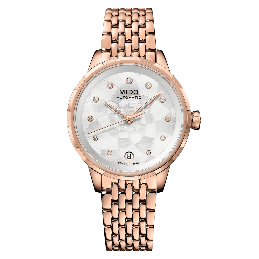 The Mido Rainflower collection draws inspiration from the delicate lotus flower, reflected in its elegant dial patterns and graceful proportions. Designed for refined everyday wear, these timepieces combine feminine aesthetics with reliable Swiss automatic movements.
