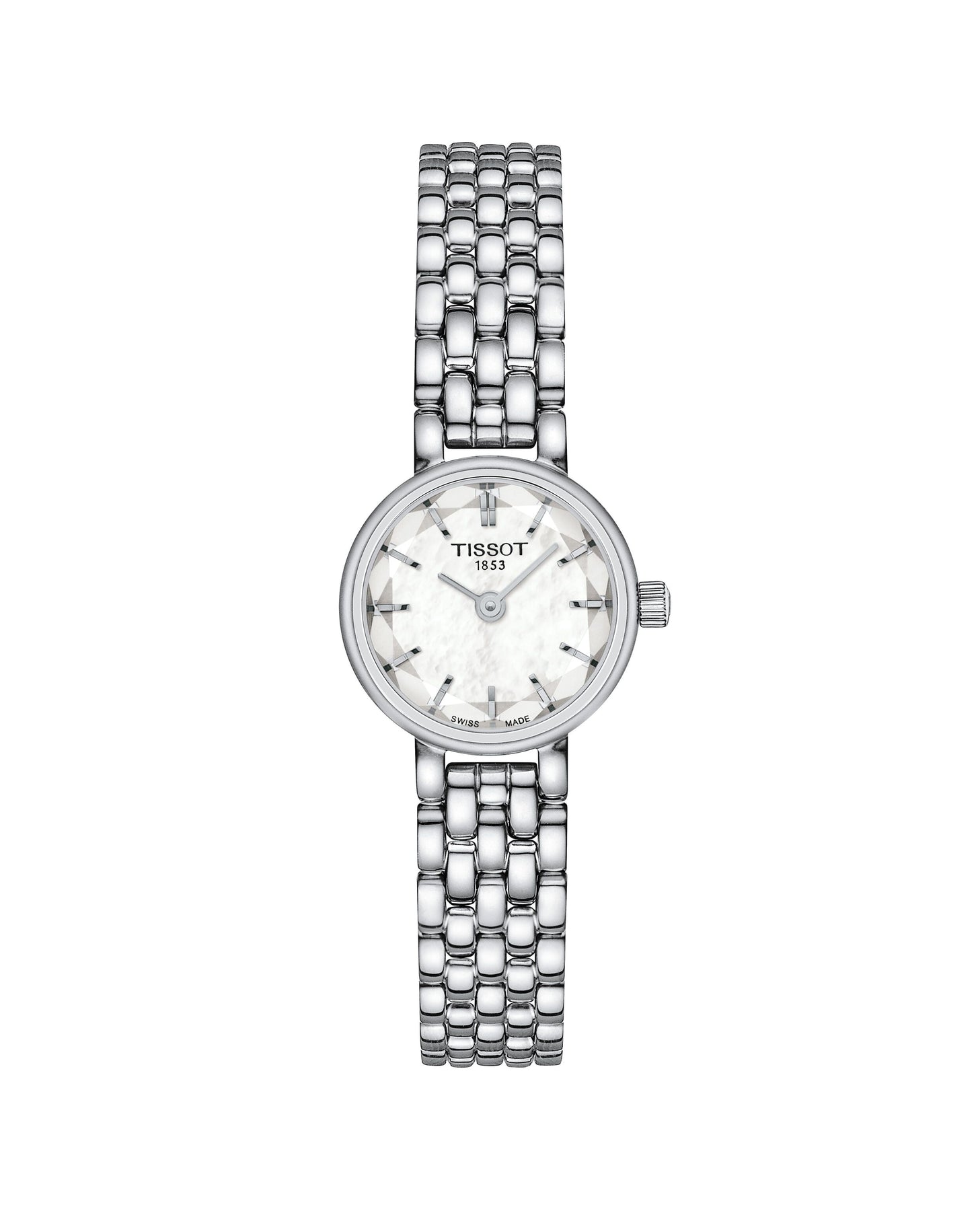 The TISSOT Lovely Round 19.5mm is a delicate and elegant Swiss timepiece designed for women who appreciate timeless refinement. Featuring a 316L stainless steel case, white mother-of-pearl dial, and slim stainless steel bracelet, this petite watch offers minimalist beauty with reliable Swiss quartz precision. Its ultra-slim profile and scratch-resistant sapphire crystal make it perfect for everyday sophistication.