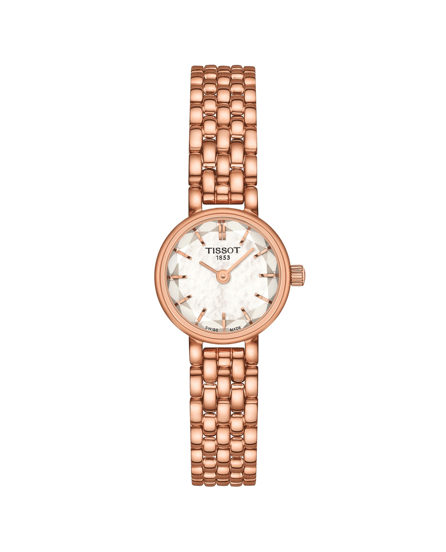The TISSOT Lovely Round 19.5mm is a refined women’s watch with a 316L stainless steel case with rose gold PVD coating, white mother-of-pearl dial, and rose gold steel bracelet. Featuring Swiss quartz movement, a butterfly clasp with push-buttons, and water resistance up to 30 meters, it combines elegance with everyday durability. Perfect for a timeless, classic style.