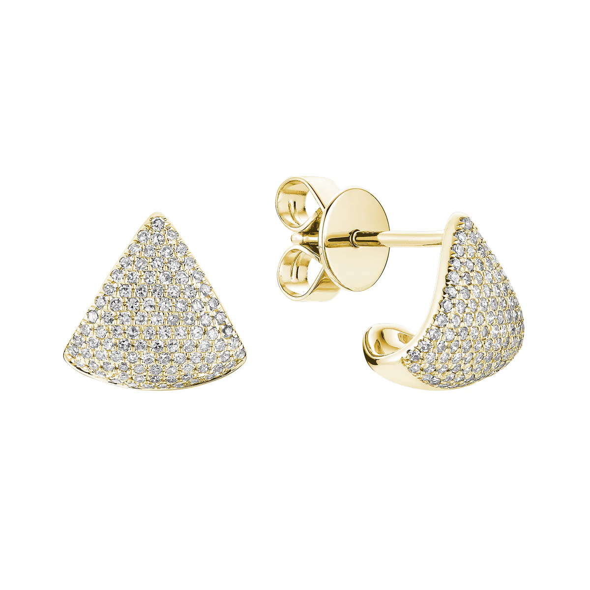 Make a bold yet refined statement with these Triangular Cuff Diamond Stud Earrings, crafted in 14K gold. Featuring a unique triangular cuff design, each piece is adorned with 200 shimmering diamonds totaling 0.408CTDI, delivering a striking sparkle with modern elegance. Perfect for elevating both everyday and special occasion looks.
