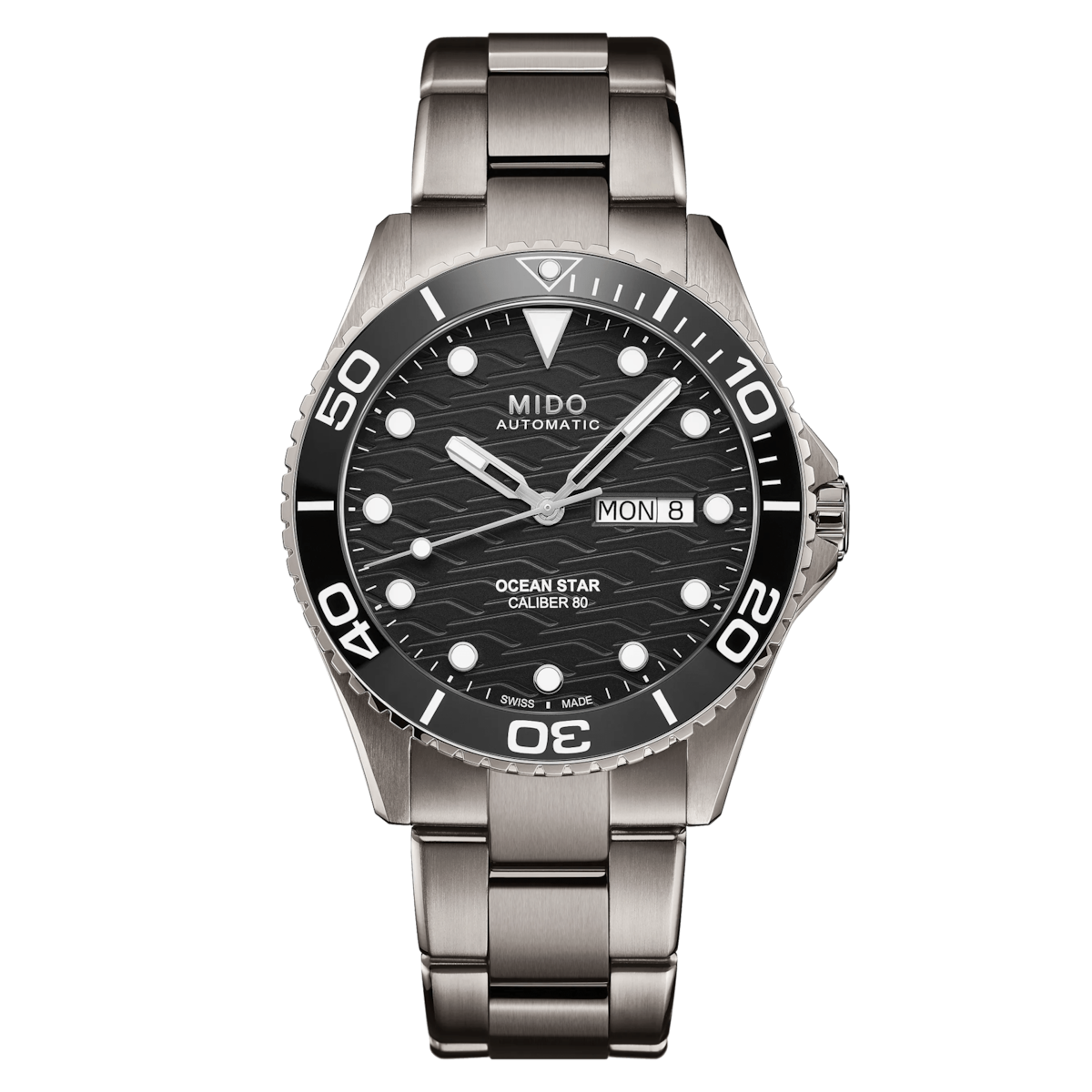 The Mido Ocean Star 200C Titanium 42.5mm is a high-performance diving watch combining lightweight comfort with robust Swiss engineering. Crafted in titanium with a ceramic bezel, it features a bold black dial with applied indexes for excellent legibility in all conditions. Powered by a Mido Automatic ETA movement (Caliber 6583) with up to 80 hours of power reserve, it includes practical day and date functions. With 200m water resistance and a screw-down crown, this Swiss-made timepiece delivers durability, precision, and everyday wearability.