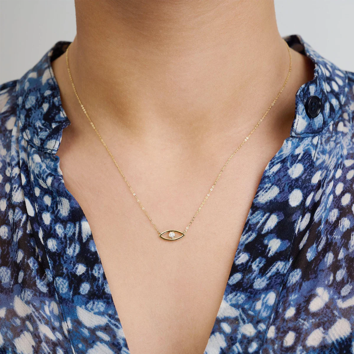 Evil Eye Diamond Necklace in 10K Gold with 1 diamond totaling 0.06CTDI