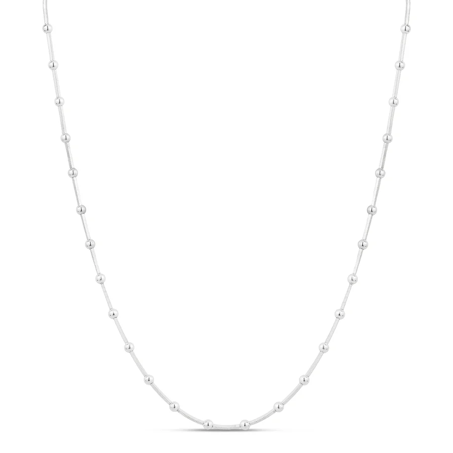 Ajoutez une touche de modernité à votre collection de bijoux avec le collier de perles Miss Mimi. Fabriqué en Italie, ce collier de 45 cm (18") présente une élégante chaîne serpent accentuée de délicats détails perlés, offrant un éclat subtil mais sophistiqué. Les boucles réglables à 40 cm (16") et 43 cm (17") permettent un style polyvalent, parfait pour être superposé ou porté seul.