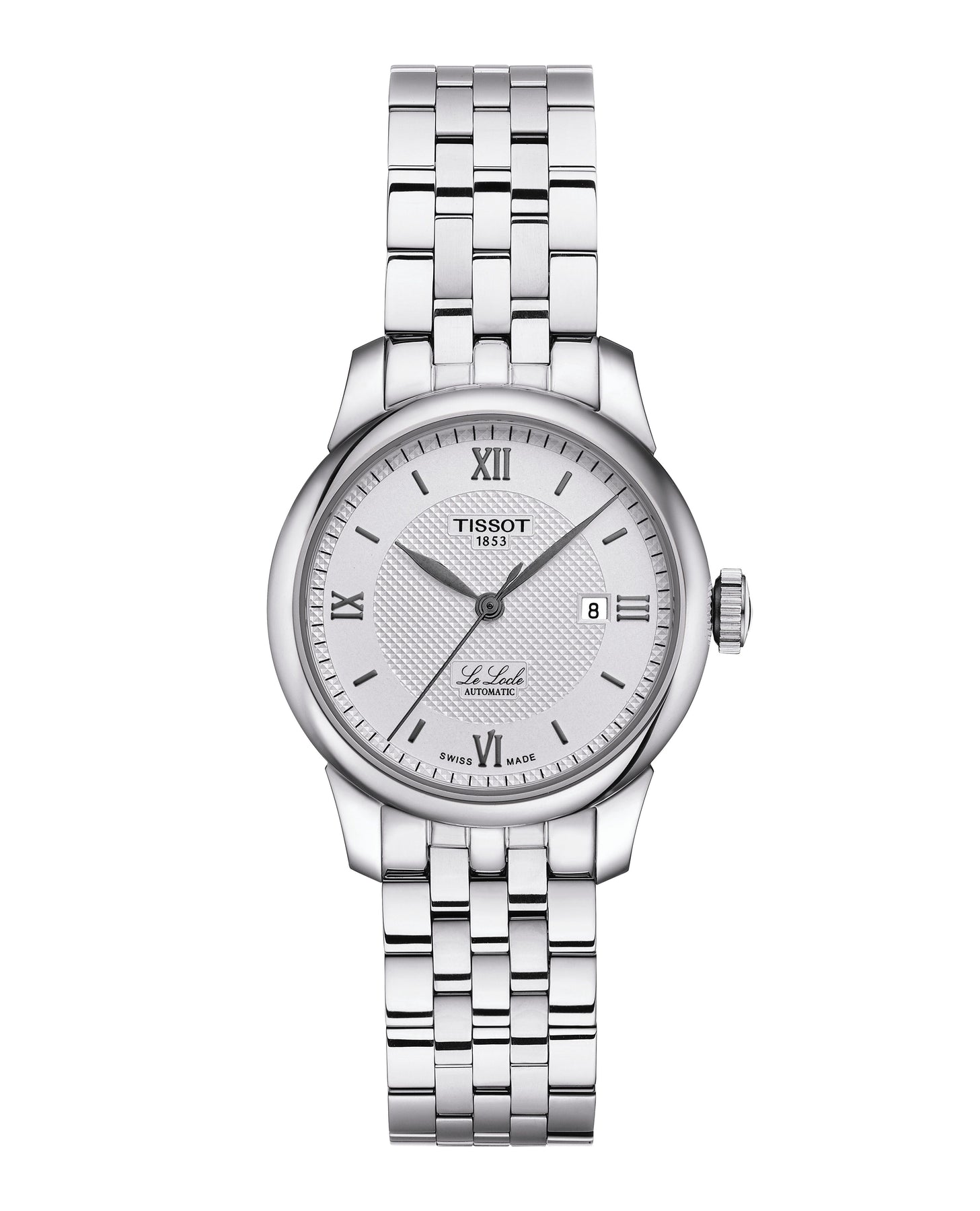The TISSOT Le Locle 29mm is a sophisticated women's watch with a silver dial and Roman indexes. Featuring a 316L stainless steel case, see-through caseback, and scratch-resistant sapphire crystal, it houses a Swiss automatic movement with patented Nivachron balance spring and 48-hour power reserve. The grey stainless steel bracelet has a butterfly clasp with push-buttons, offering both elegance and reliability.