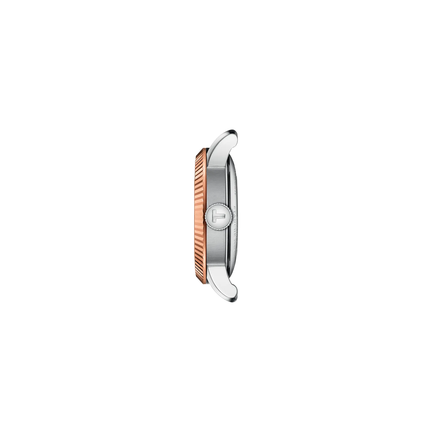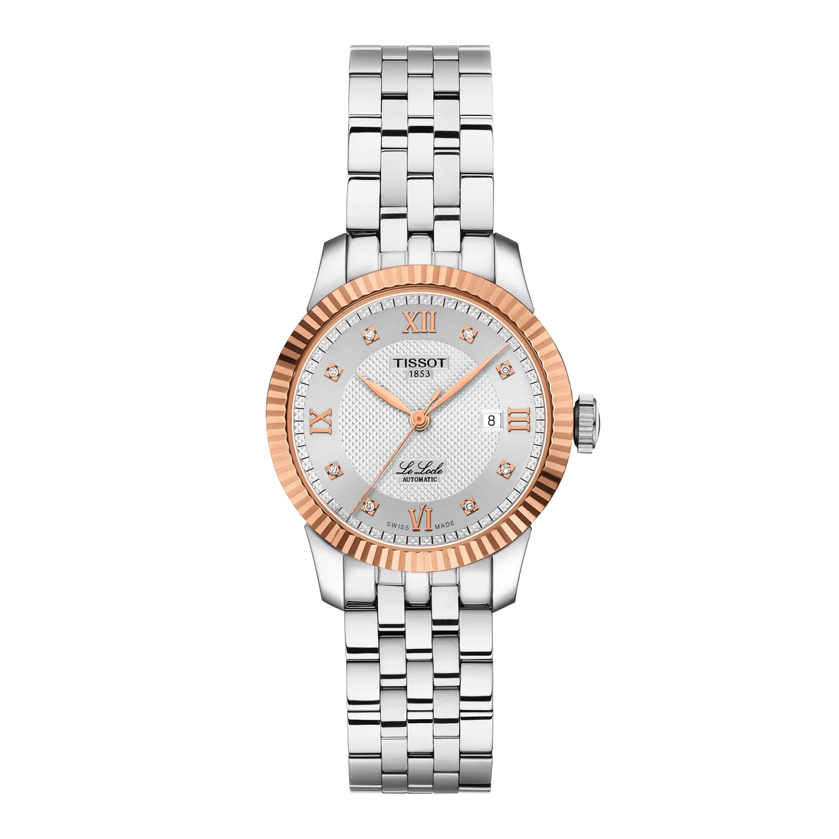The TISSOT Le Locle Gold 29mm is a timeless Swiss automatic watch that embodies classic elegance. Featuring a 316L stainless steel case with an 18K rose gold bezel, a silver dial with Roman numerals and 8 diamond indexes, and a refined stainless steel bracelet, this timepiece offers sophisticated detailing. Powered by the Powermatic 48.111 movement with up to 48 hours of power reserve and a patented Nivachron balance spring, it combines heritage craftsmanship with modern precision.